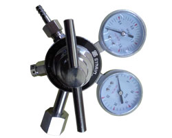 ★ 氢气等可燃性气体气瓶阀门与普通气瓶螺牙方向相反,因此减压阀也有所区别,标志为连接气瓶端接头中部有凹槽,氮气、氦气和氧气调压阀则没有,使用时应特别注意。